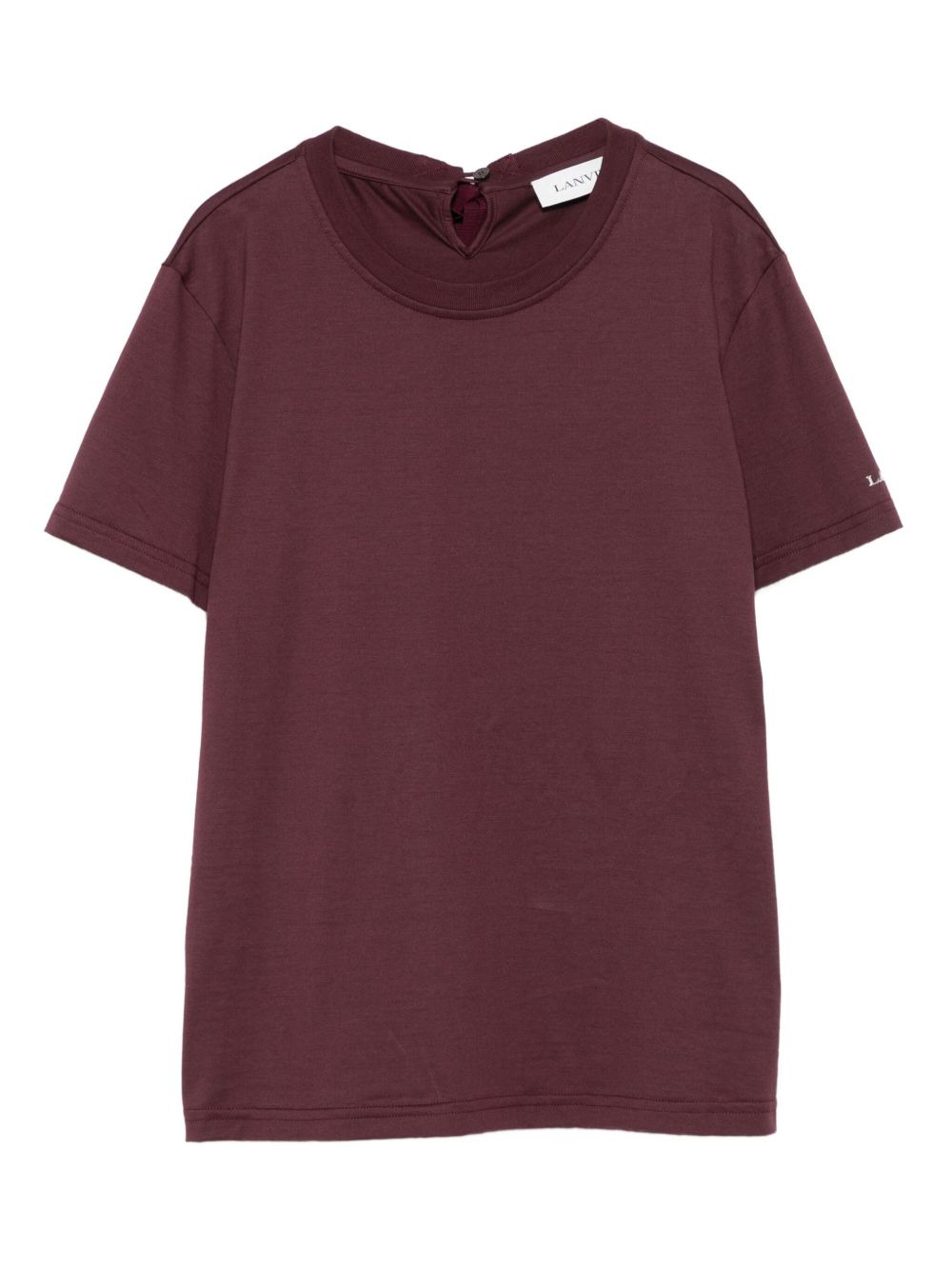 keyhole tie-detail top Highlights - Burgundy - Keyhole rear detail - Short sleeves - Tie details - Straight hem Made in Italy Composition Cotton 100% SIZE & FIT Model measurements Height 5 ft 9 in(1.75 m) Bust/Chest 32.67 in(83 cm) Hips 36.22 in(92 cm) Waist 24.8 in(63 cm) Washing instructions Read Manufacturer Guidelines