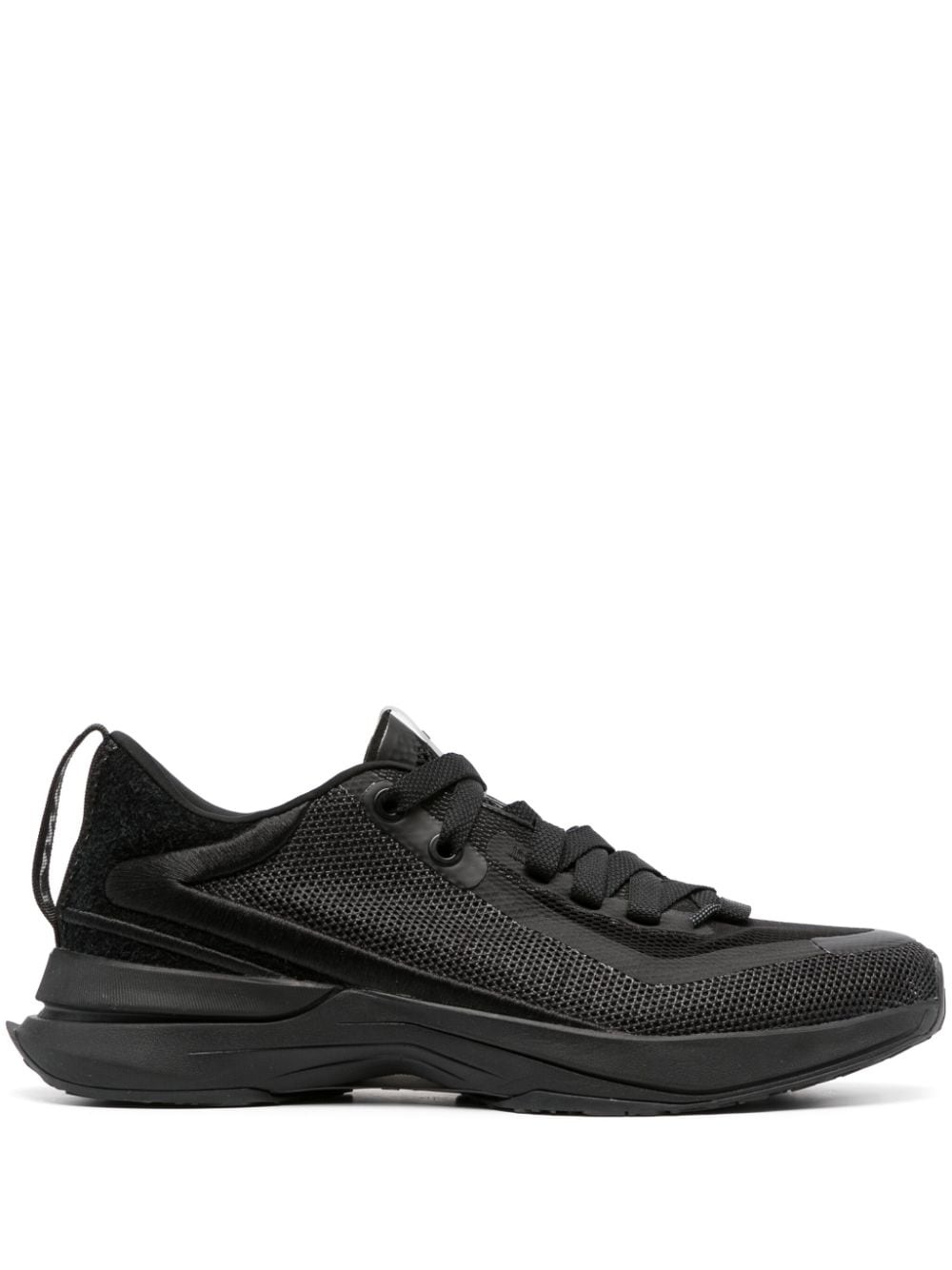 logo-detail mesh sneakers Taking inspiration from sports footwear, these Lanvin sneakers blend suede and mesh panels to provide optimal breathability and ease of movement. The pair is adorned with a subtle logo on the side, while a chunky rubber sole enhances cushioning and resilience. Highlights - Black - Calf suede - Panelled design - Mesh panelling - Logo print to the side - Logo patch at the tongue - Front lace-up fastening - Round toe - Logo pull-tab at the heel - Chunky rubber sole Made in Italy Composition Outer: Rubber 100%, Fabric 100% Sole: Rubber 100% Lining: Fabric 100% SIZE & FIT Measurement HEEL 1.77 in(4.5 cm) Sole height 0.98 in(2.5 cm)