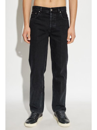 logo-embossed jeans Highlights - Black - Cotton - Denim - Leather trim - Front button and zip fastening - Embossed logo to the rear - Belt loops - Classic five pockets - Straight leg Made in Italy Composition Cotton 100%, Calf Leather 100%