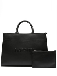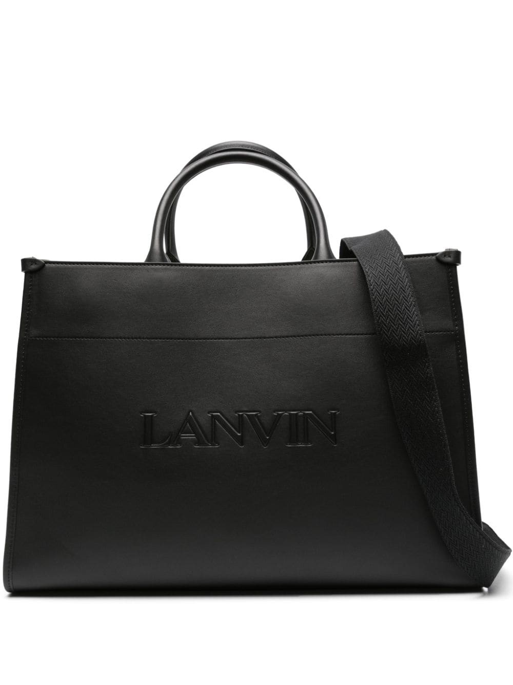logo-embossed leather tote bag A multitasking accessory crafted from calf leather, this black Lanvin tote bag boasts a wide silhouette with a spacious main compartment and removable pouch, ideal for storing essentials. Meanwhile, two rolled top handles and a detachable shoulder strap allow multiple carrying alternatives. It is decorated with an embossed logo to the front, a subtle branding touch in an otherwise unadorned design. Highlights - Black - Calf leather - Embossed logo to the front - Open top - Detachable shoulder strap - Two rolled top handles - Main compartment - Removable pouch Made in Italy Composition Outer: Calf Leather 100%, Brass 50%, zamac 50% Lining: Calf Leather 100% SIZE & FIT Model measurements Height 5 ft 10 in(1.78 m) Bust/Chest 33.07 in(84 cm) Hips 36.61 in(93 cm) Waist 24.8 in(63 cm) Measurement DEPTH 6.29 in(16 cm) HANDLE 5.9 in(15 cm) HEIGHT 11.81 in(30 cm) STRAP 21.65 in(55 cm) WIDTH 17.71 in(45 cm)