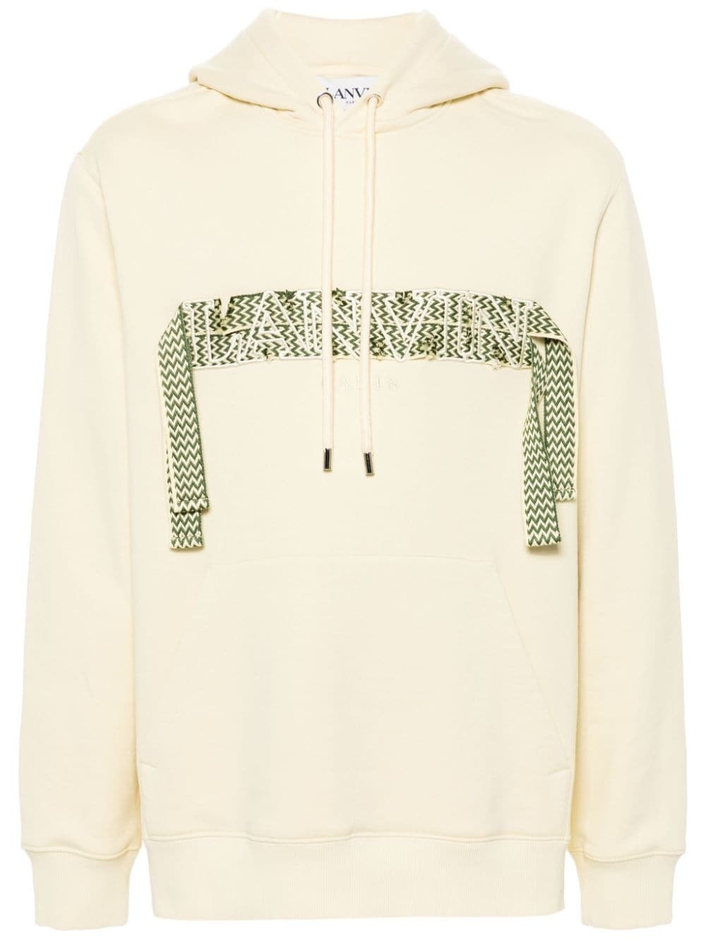 logo-embroidered cotton hoodie Highlights - Light yellow - Cotton - Jersey texture - Embroidered logo to the front with laces detailing - Drawstring hood - Long sleeves - Ribbed cuffs and hem - Front pouch pocket - Straight hem Imported Composition Cotton 100%, Polyester 100% SIZE & FIT FittingInformation Designed to be unstructured, offering a loose fit throughout The ribbed hem offers a close, comfortable fit Made from a midweight non-stretch fabric, this piece offers minimal elasticity when worn This piece fits true to size – take your usual size
