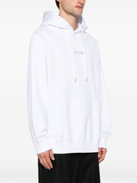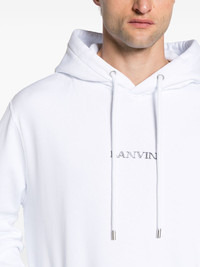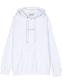 logo-embroidered cotton hoodie Made from cotton to a relaxed silhouette, this Lanvin white hoodie is embroidered with the brand's logo across the front for a recognisable finish. Highlights - White/black - Cotton - Jersey texture - Embroidered logo to the front - Drawstring hood - Drop shoulder - Long sleeves - Ribbed cuffs and hem - Front pouch pocket - Straight hem - Fleece lining - When buying this unisex item, keep in mind that it is graded in standard men's sizing. Imported Composition Polyester 100%, Cotton 100% SIZE & FIT Model measurements Height 5 ft 11 in(1.8 m) Bust/Chest 35.03 in(89 cm) Hips 35.03 in(89 cm) Waist 23.62 in(60 cm) FittingInformation Designed to be unstructured, offering a loose fit throughout Made from a midweight non-stretch fabric, this piece offers minimal elasticity when worn This piece fits true to size – take your usual size Washing instructions Machine Wash