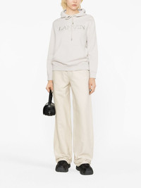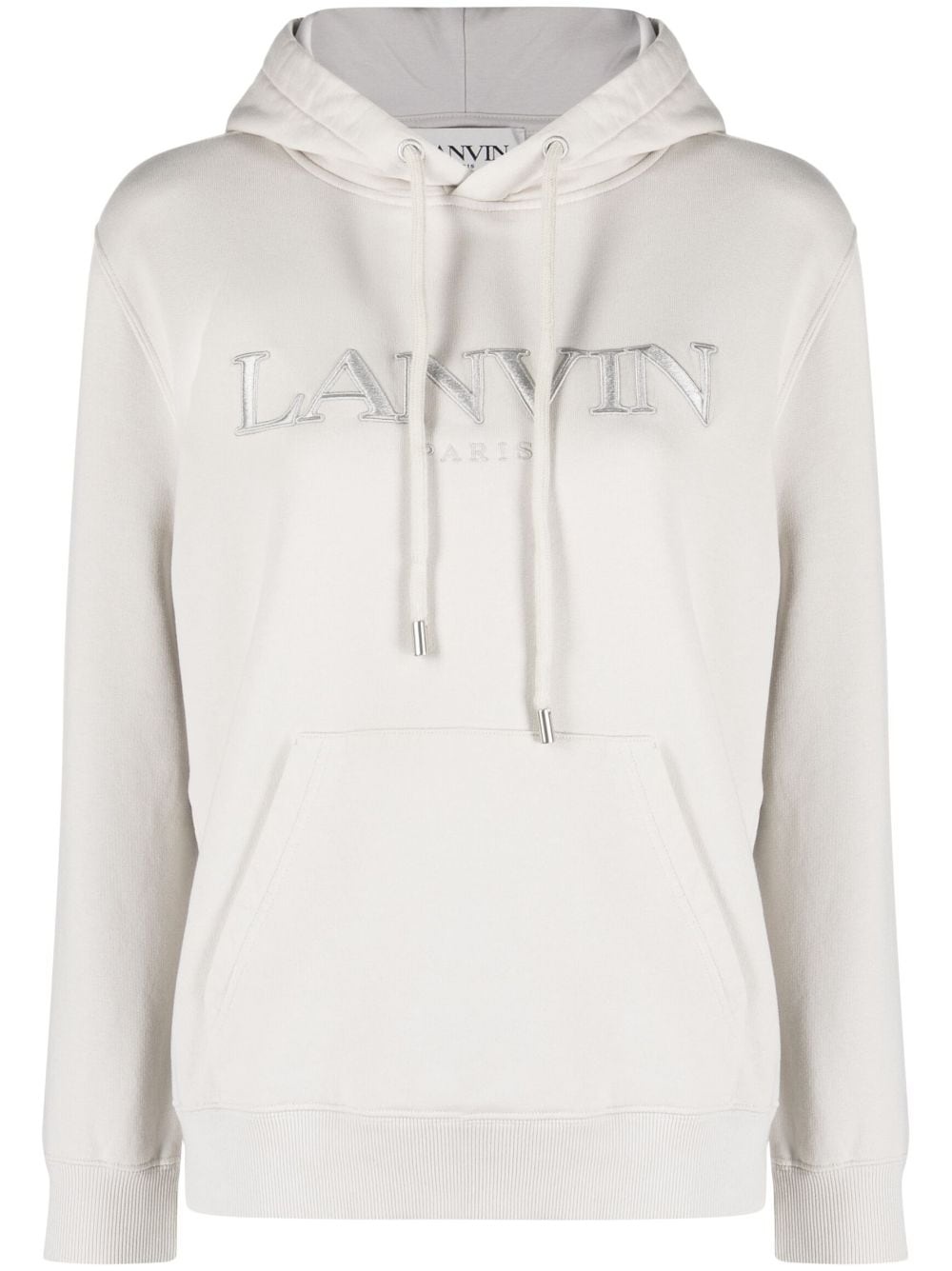 logo-embroidered cotton hoodie Lanvin minimally adheres to logomania with this cotton hoodie, embellishing the drawstring silhouette with an embroidered logo on the front. Highlights - Light grey - Cotton - Embroidered logo - Drawstring hood - Long sleeves - Elasticated cuffs - Front pouch pocket - Elasticated hem Imported Composition Cotton 100%, Polyester 100% SIZE & FIT Model measurements Height 5 ft 10 in(1.79 m) Bust/Chest 31.49 in(80 cm) Hips 35.03 in(89 cm) Waist 23.62 in(60 cm) FittingInformation Designed for a relaxed fit, this piece allows for comfort and movement when worn Made from a midweight non-stretch fabric, this piece offers minimal elasticity when worn This piece fits true to size – take your usual size Washing instructions Machine Wash