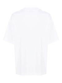 logo-embroidered cotton T-shirt Highlights - White/purple - Cotton - Jersey texture - Embroidered logo - Crew neck - Drop shoulder - Short sleeves - Straight hem - When buying this unisex item, keep in mind that it is graded in standard men's sizing. Made in Italy Composition Cotton 100%, Polyester 100% SIZE & FIT FittingInformation Designed for an oversized fit, offering additional room throughout Made from a midweight non-stretch fabric, this piece offers minimal elasticity when worn