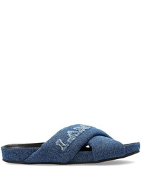 logo-embroidered crossover denim slides