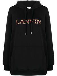 logo-embroidered hoodie Lanvin captures its minimalist side with this hoodie. Rendered in black, it's embroidered with logo lettering in multicoloured threads. Highlights - Black/multicolour - Cotton - Embroidered logo to the front - Drawstring hem - Long sleeves - Front pouch pocket Made in Italy Composition Polyester 100%, Cotton 100% SIZE & FIT Model measurements Height 5 ft 10 in(1.77 m) Bust/Chest 32.67 in(83 cm) Hips 35.43 in(90 cm) Waist 23.62 in(60 cm) FittingInformation Designed to be unstructured, offering a loose fit throughout Made from a midweight non-stretch fabric, this piece offers minimal elasticity when worn This piece fits true to size – take your usual size