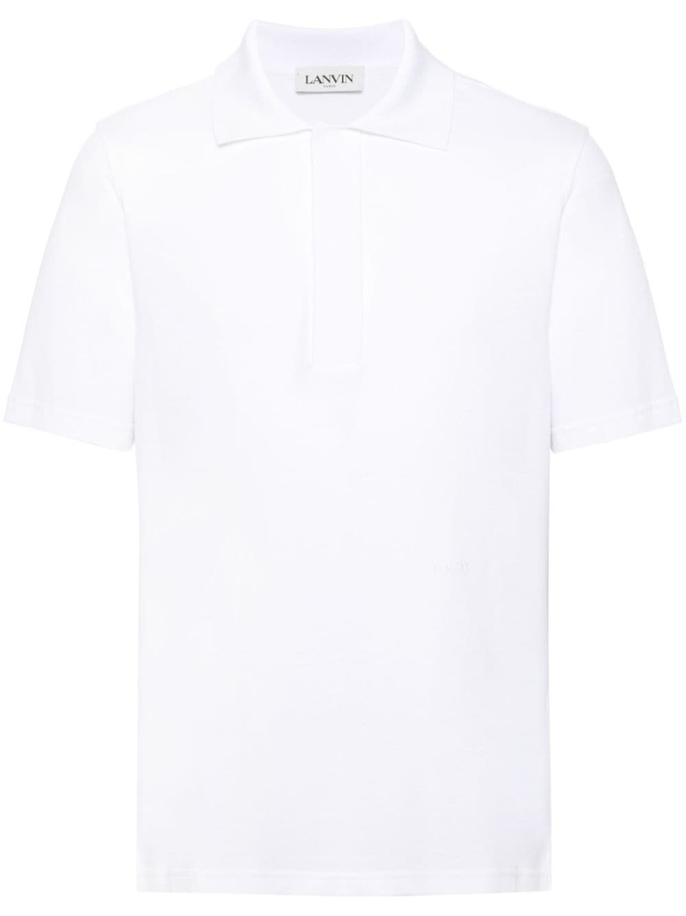logo-embroidered pique polo shirt Highlights - Optical white - Cotton - Pique weave - Embroidered logo to the front - Logo-engraved mother-of-pearl buttons - Polo collar - Short sleeves - Short side slits - Concealed short front button fastening - Straight hem - Unlined Made in Italy Composition Viscose 100%, Cotton 100%, Mother of Pearl 100% SIZE & FIT Model measurements Height 6 ft 2 in(1.87 m) Bust/Chest 37.79 in(96 cm) Hips 37.79 in(96 cm) Waist 30.31 in(77 cm) Measurement CHEST 42 in(106.7 cm) SLEEVE LENGTH 10 in(25.4 cm) FittingInformation Designed for a regular fit, this polo shirt offers a comfortable loose fit throughout the body Made from a midweight non-stretch fabric, this piece offers minimal elasticity when worn This piece fits true to size – take your usual size Washing instructions Machine Wash
