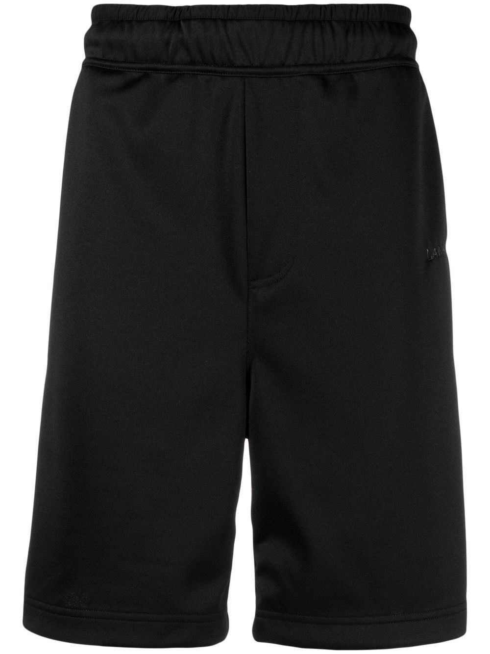 logo-embroidered track shorts Lanvin lends its signature Parisian tastefulness to a sportswear classic with these track shorts. The knee-length silhouette is presented in a sleek black hue and features a tonally embroidered iteration of the brand’s logo for an understated branded touch. Made in Italy Composition Polyester 62%, Cotton 28%, Polyamide 10% SIZE & FIT Model measurements Height 6 ft 1 in(1.85 m) Bust/Chest 35.82 in(91 cm) Hips 37.79 in(96 cm) Waist 29.13 in(74 cm) FittingInformation This piece fits true to size. We recommend you get your regular size Designed for a slim fit at the waist and loose over the leg Made with a mid-weight non-stretch fabric Washing instructions Machine Wash