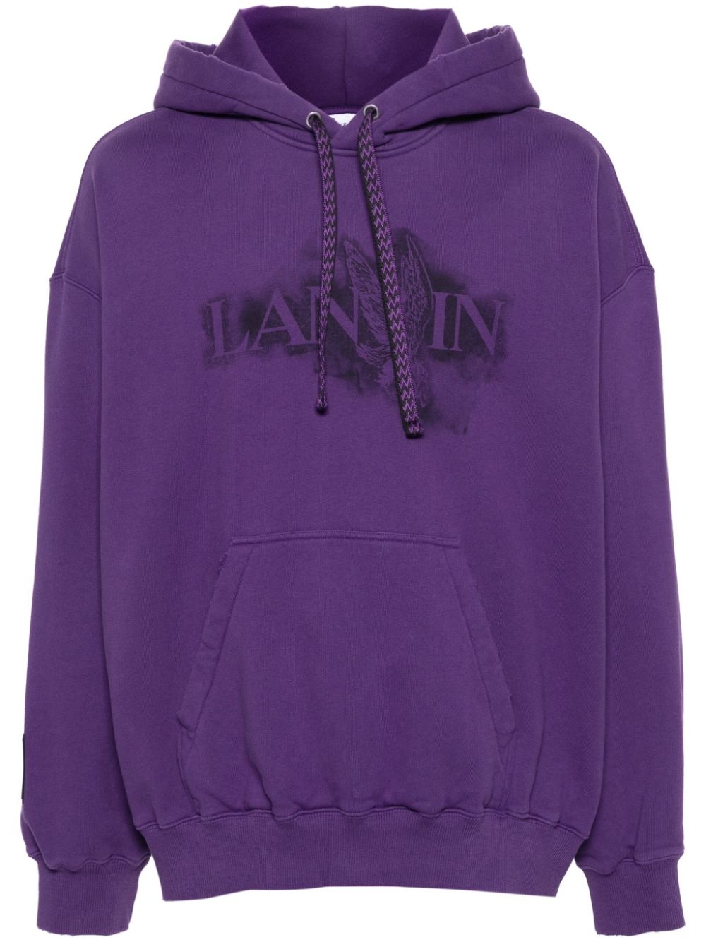 x Future logo-print cotton hoodie Boasting Lanvin's logo across the front in a faded effect, this purple hoodie is made from cotton and complete with the brand's signature chevron drawstring. Highlights - Plum purple - Cotton - Jersey texture - Distressed effect - Slouchy drawstring hood - Drop shoulder - Long sleeves - Logo print to the front - Front pouch pocket - Ribbed cuffs and hem - Fleece lining - Pull-on style Imported Composition Cotton 100%, Silicone 100% SIZE & FIT Model measurements Height 6 ft 2 in(1.89 m) Bust/Chest 39.76 in(101 cm) Hips 37.4 in(95 cm) Waist 29.92 in(76 cm) FittingInformation Designed to be unstructured, offering a loose fit throughout Made from a midweight non-stretch fabric, this piece offers minimal elasticity when worn This piece fits true to size – take your usual size Washing instructions Machine Wash