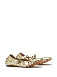 logo-tag leather ballerinas Highlights - Champagne - Leather - Cracked effect - Logo tag to the rear - Round toe - Buckle-strap fastening - Branded leather insole - Rubber sole Made in Italy Composition Lining: Calf Leather 100% Outer: Metallic Leather 100% Sole: Rubber 100%, Calf Leather 100%