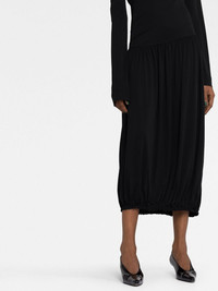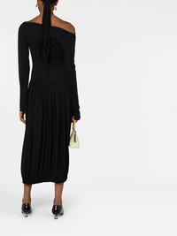ASYMETRIC TOP LONG SLEEVE DRAPED MIDI DRESS IN FLUID CREPE