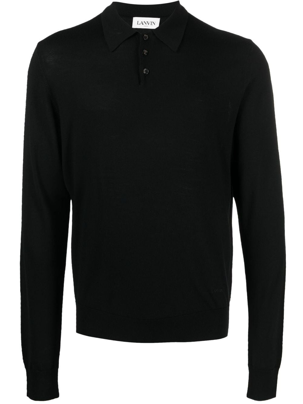 long-sleeve polo shirt Crafted from soft merino wool and adorned with buttons made from buffalo horn, this refined polo shirt by Lanvin is rendered in black and features long sleeves. Highlights - Black - Merino wool - Polo collar - Front button placket - Long sleeves - Ribbed trim - Straight hem Made in Italy Composition Merino 100% SIZE & FIT Model measurements Height 6 ft 2 in(1.87 m) Bust/Chest 38.18 in(97 cm) Hips 36.61 in(93 cm) Waist 29.13 in(74 cm) FittingInformation Designed for a regular fit, this polo shirt offers a comfortable loose fit throughout the body The ribbed hem offers a close, comfortable fit Made with a lightweight knit, this piece offers some stretch This piece fits true to size – take your usual size Washing instructions Machine Wash