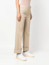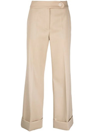 mid-rise cropped wool trousers light beige wool mid-rise pressed crease front button and zip fastening two rear welt pockets wide leg cropped leg folded edge Made in Italy Composition Outer: Buffalo Horn 100%, Wool 100% Lining: Cotton 100% SIZE & FIT Model measurements Height 5 ft 11 in(1.81 m) Bust/Chest 36.61 in(93 cm) Hips 37.4 in(95 cm) Waist 24.8 in(63 cm) FittingInformation This piece fits true to size. We recommend you get your regular size Designed to be fitted at the waist and hips, loose over the leg Made with a mid-weight non-stretch fabric Washing instructions Dry Clean Only