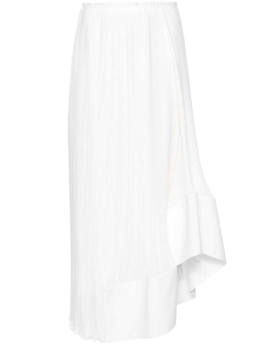 midi pleated skirt Highlights - White - Crepe de chine - Fully pleated - Asymmetric design - Gathered detailing - Lettuce hem - Full lining - Concealed side hook and zip fastening Imported Composition Polyester 100% SIZE & FIT Model measurements Height 5 ft 11 in(1.8 m) Bust/Chest 31.49 in(80 cm) Hips 36.22 in(92 cm) Waist 25.59 in(65 cm) FittingInformation This midi-length skirt is intended to be worn high on the waist Made from a midweight non-stretch fabric This piece fits true to size – take your usual size Washing instructions Dry Clean Only