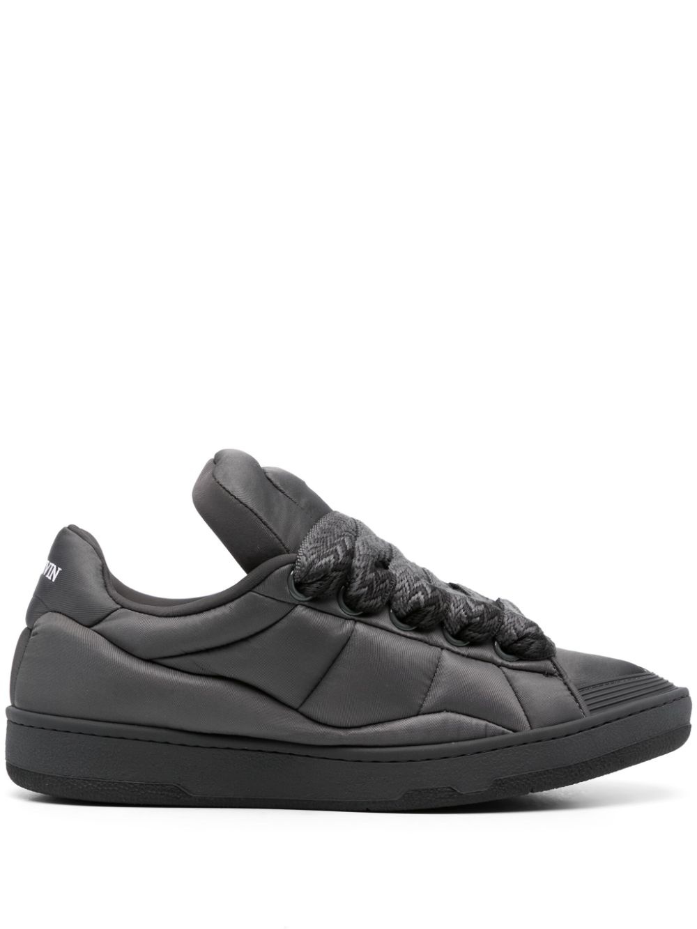 Curb XL nylon sneakers Made in Portugal from nylon that lends its slightly padded upper a delicate sheen, the XL Curb sneakers are named after their exaggerated and enlarged lace-up fastening. A nod to Lanvin's focus on both futuristic silhouettes and tradition, the contemporary pair is adorned with a Mother and Child motif at the tongue. Highlights - Black - Quilted - Front lace-up fastening - Signature mother and child motif - Oversize tongue - Branded heel counter - Branded leather insole - Flat rubber sole Imported Composition Lining: Calf Leather 100% Sole: Rubber 100% Outer: Polyamide 100% SIZE & FIT Measurement HEEL 1.18 in(3 cm) Sole height 0.98 in(2.5 cm)