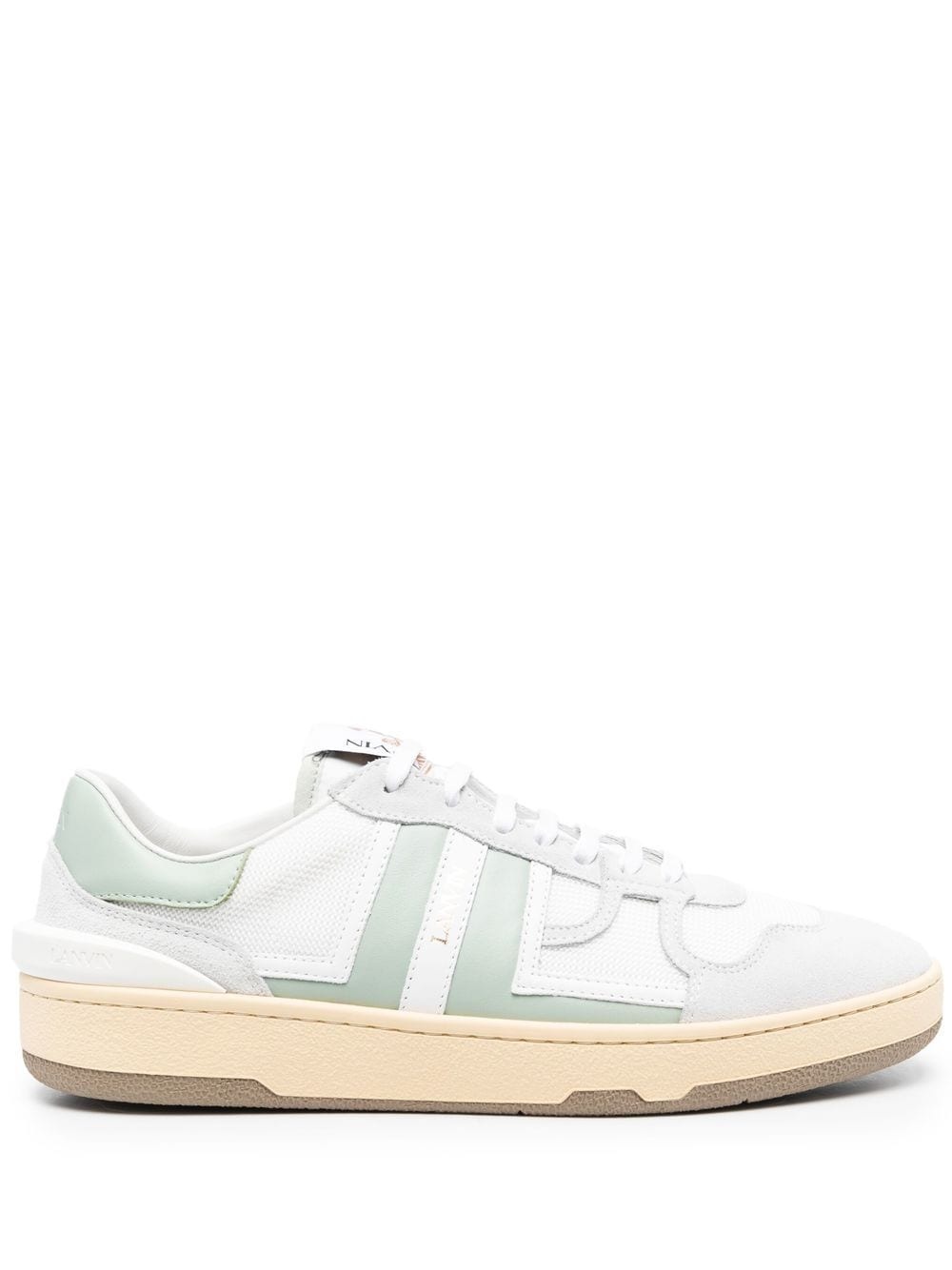 panelled low-top sneakers Adding a contemporary feel to lifestyle trainers, this pair from Lanvin boast leather panelling in a sleek low-top design. The contrasting sage green and grey colourway creates a fresh aesthetic for the look. Imported Composition Outer: Calf Leather 100%, Fabric 100% Lining: Calf Leather 100%, Fabric 100% Sole: Rubber 100% SIZE & FIT Measurement HEEL 1.77 in(4.5 cm) Sole height 0.98 in(2.5 cm)