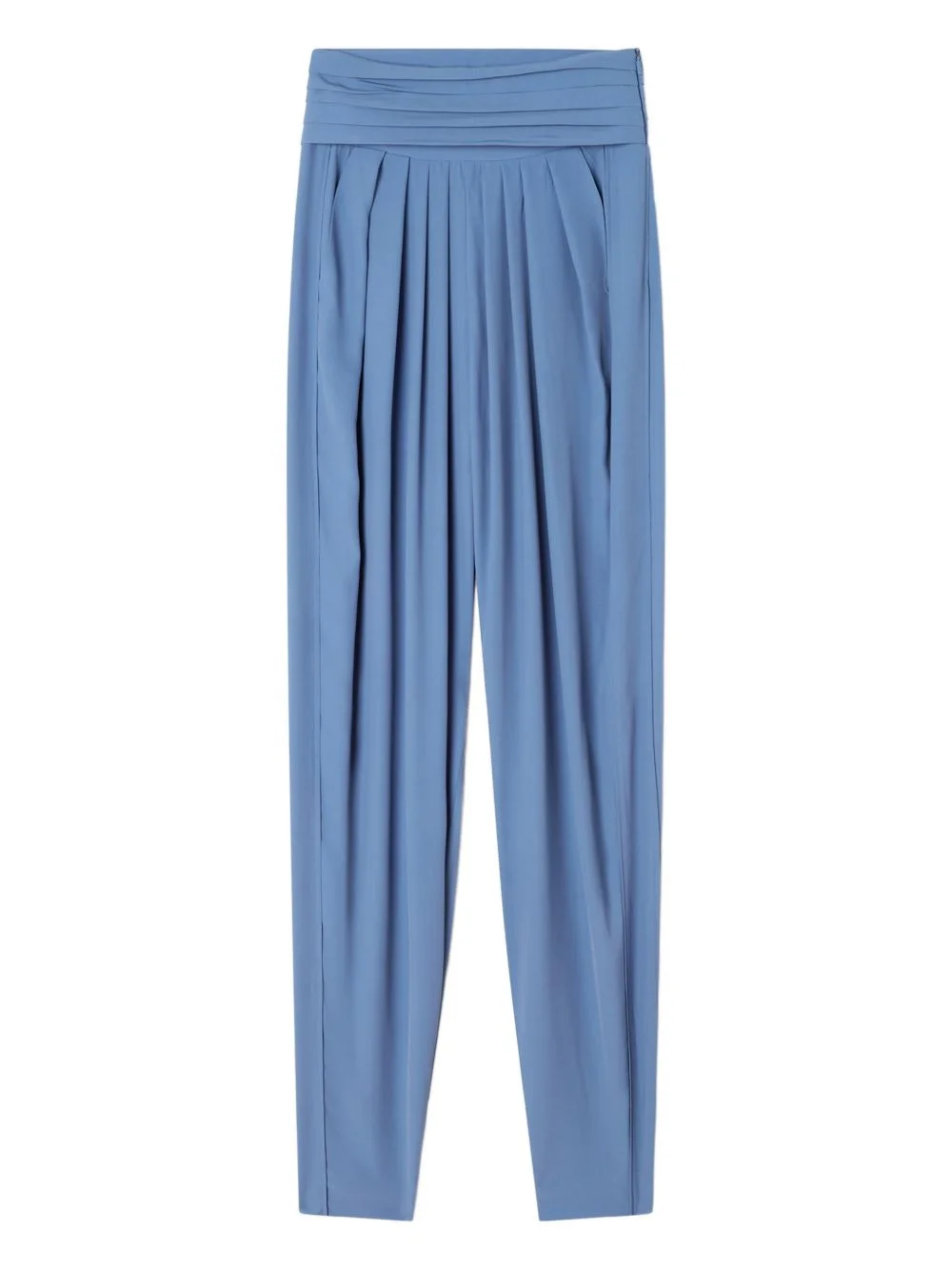 pleated-detail zip trousers Highlights - Cornflower blue - Pleated design - Side slip pockets - Zip hem - Zop fastening Imported Composition Viscose 70%, Silk 30% Washing instructions Read Manufacturer Guidelines