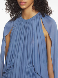 pleated dress Highlights - Blue - Round neck - Cape design - Cut-out detailing Imported Composition Viscose 80%, Silk 20%
