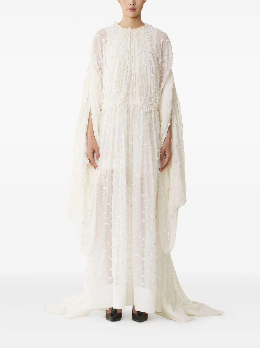pleated maxi dress Highlights - White - Silk-blend - Pleated bodice - Long sleeves - Asymmetric hem Made in France Composition Silk 74%, Polyester 26% Washing instructions Read Manufacturer Guidelines