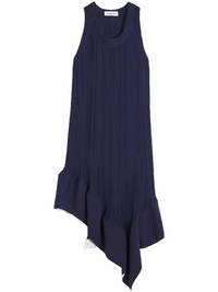 pleated midi dress Highlights - Navy blue - Fully pleated - Mid-length - Slip-on style - Ruffled detailing - Round neck - Sleeveless - Three front patch pockets - Asymmetric hem Imported Composition Polyester 100%