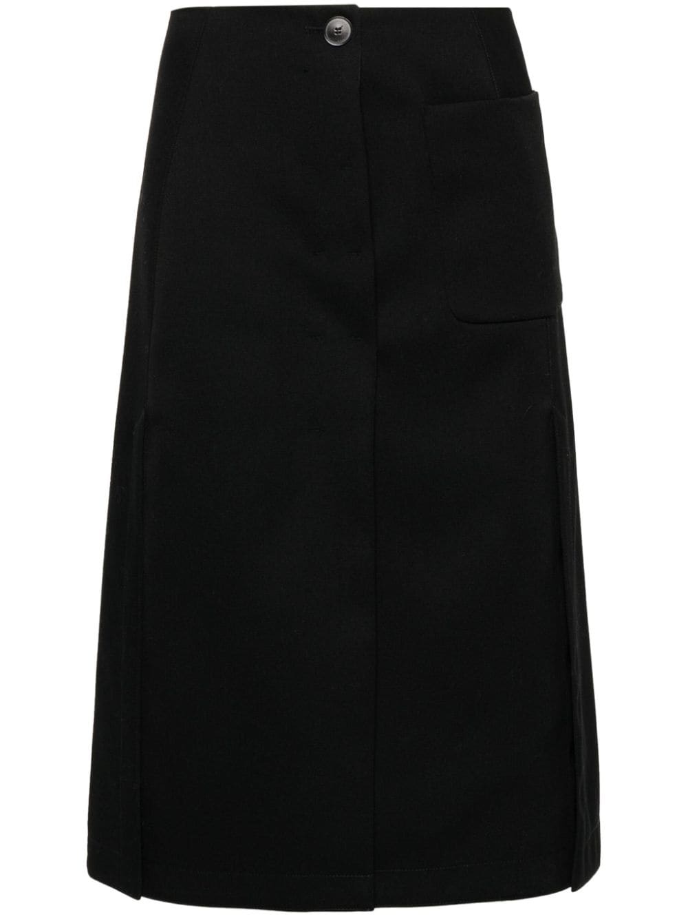 pleated tailored midi skirt Highlights - Black - Wool - Pleat detailing - Front button fastening - Front patch pocket - Straight hem Made in Italy Composition Lining: Viscose 100% Outer: Wool 100% SIZE & FIT Model measurements Height 5 ft 10 in(1.78 m) Bust/Chest 33.07 in(84 cm) Hips 36.61 in(93 cm) Waist 24.8 in(63 cm) FittingInformation This midi-length skirt is intended to be worn high on the waist The vented hem offers movement at the rear Made from a midweight non-stretch fabric This piece fits true to size – take your usual size Washing instructions Dry Clean Only