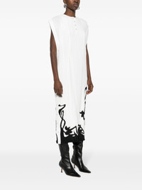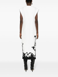 plisse-effect midi dress Highlights - White/black - Recycled polyester - Crepe de chine - Plisse effect - Round neck - Short sleeves - Abstract pattern print - Straight hem - Unlined - Short front button fastening - Side button fastening Imported Composition Lining: Rubber 100% Outer: Recycled Polyester 100% SIZE & FIT Model measurements Height 5 ft 11 in(1.8 m) Bust/Chest 32.67 in(83 cm) Hips 36.22 in(92 cm) Waist 24.4 in(62 cm) FittingInformation Designed for a relaxed fit, this piece allows for comfort and movement when worn The detachable slip sits just away from the body, offering a close yet comfortable fit The pleated construction on this piece allows for additional movement and flexibility in the fit This piece fits true to size – take your usual size