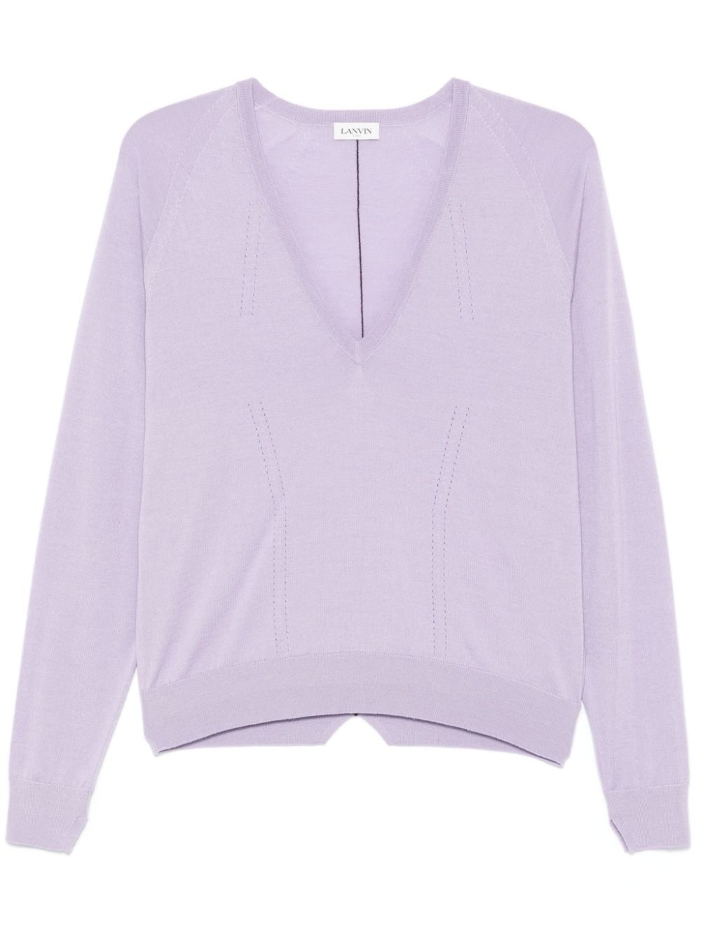 pointelle-trim sweater Highlights - Lavender purple - Fine knit - Pointelle trim - Ribbed v-neck - Long sleeves - Ribbed cuffs and hem Made in Italy Composition Virgin Wool 39%, Cashmere 30%, Silk 30%, Polyamide 1% SIZE & FIT Model measurements Height 5 ft 10 in(1.77 m) Bust/Chest 33.07 in(84 cm) Hips 37 in(94 cm) Waist 24.8 in(63 cm) FittingInformation Designed for a relaxed fit, this piece allows for comfort and movement when worn The ribbed hem offers a close, comfortable fit Made with a lightweight knit, this piece offers some stretch