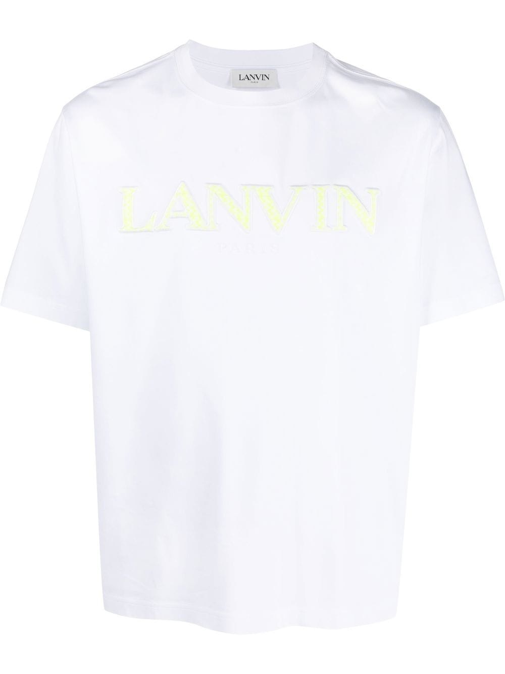 raised-logo cotton T-shirt Crafted in crisp white cotton, this Lanvin T-shirt is adorned with raised logo lettering across the front. The motif is punctuated by neon yellow for a pop of colour. Imported Composition Polyester 100%, Cotton 100% SIZE & FIT Model measurements Height 6 ft 1 in(1.85 m) Bust/Chest 38.58 in(98 cm) Hips 37 in(94 cm) Waist 30.31 in(77 cm) FittingInformation This piece fits true to size. We recommend you get your regular size Cut for a relaxed fit Made with a mid-weight fabric Washing instructions Machine Wash