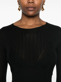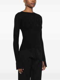 ribbed-knit jumper Highlights - Black - Wool-silk blend - Ribbed knit - Crew neck - Long sleeves - Straight hem Made in Italy Composition Virgin Wool 39%, Silk 30%, Cashmere 30%, Polyamide 1% SIZE & FIT Model measurements Height 5 ft 11 in(1.8 m) Bust/Chest 31.49 in(80 cm) Hips 36.61 in(93 cm) Waist 24.4 in(62 cm) FittingInformation Designed for a slim fit that sits just away from the body offering a close yet comfortable fit Made with a lightweight knit, this piece offers some stretch