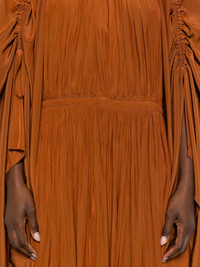 ruched pleated dress Highlights Imported Composition Fabric 100% SIZE & FIT Model measurements Height 5 ft 10 in(1.77 m) Bust/Chest 32.28 in(82 cm) Hips 35.03 in(89 cm) Waist 25.19 in(64 cm)