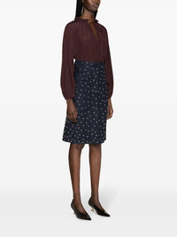 ruffle-detailed flared blouse This brown Lanvin top takes its cues from the medieval fashion from the 1978 film ‘Perceval le Gallois’ – most notably the ruffled and gathered tie neck. The soft ripples add depth and texture to the polka-dot jacquard pattern. Highlights - Chocolate brown - Satin finish - Patterned jacquard - Ruffle collar - Gathered tie neck - V-neck - Long raglan sleeves - Buttoned cuffs - Flared hem Made in Italy Composition Polyester 100% SIZE & FIT Model measurements Height 5 ft 11 in(1.8 m) Bust/Chest 34.25 in(87 cm) Hips 35.82 in(91 cm) Waist 24.8 in(63 cm) FittingInformation Designed to be unstructured, offering a loose fit throughout The adjustable drawstring means that you can adjust this piece’s fit to suit your comfort and preference Made from a lightweight non-stretch fabric This piece fits true to size – take your usual size Washing instructions Dry Clean Only