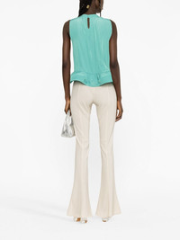 ruffle-hem blouse LANVIN's blouse speaks to the brand's affinity for refined elegance. This jade-green iteration is cut from lightweight crepe de chine and falls to a wispy peplum hem. Highlights - Jade green - Crepe de chine - Halterneck - Keyhole detail to the rear - Peplum hem Made in France Composition Polyester 100% SIZE & FIT Model measurements Height 5 ft 10 in(1.79 m) Bust/Chest 31.1 in(79 cm) Hips 35.03 in(89 cm) Waist 24.01 in(61 cm) FittingInformation Designed to be unstructured, offering a loose fit throughout Made from a lightweight non-stretch fabric This piece fits true to size – take your usual size