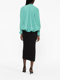 ruffled gathered blouse The ruffled detailing on this Lanvin blouse accentuates its flowy nature, in a look that is reminiscent of Victorian styles. Cut from a lightweight fabric that is designed to drape elegantly over the body, this garment is finished with a dainty bow at the neckline, enhancing its romantic feel. Highlights - Emerald green - Gathered detailing - Ruffled detailing - Gathered tie neck - Long sleeves - Ruffle hem Imported Composition Polyester 100% SIZE & FIT Model measurements Height 5 ft 11 in(1.8 m) Bust/Chest 34.25 in(87 cm) Hips 35.82 in(91 cm) Waist 24.8 in(63 cm) Measurement SLEEVE LENGTH 19.29 in(49 cm) LENGTH 25.19 in(64 cm) FittingInformation Designed to be unstructured, offering a loose fit throughout Made from a lightweight non-stretch fabric This piece fits true to size – take your usual size