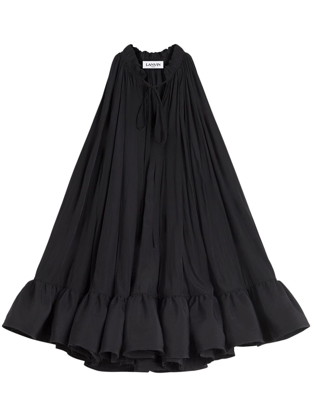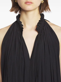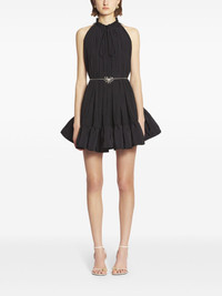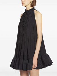 ruffled mini dress Highlights - Black - Gathered tie neck - V-neck - Sleeveless - Gathered detailing - Ruffle hem - Thigh-length - Pull-on style Imported Composition Polyester 100%