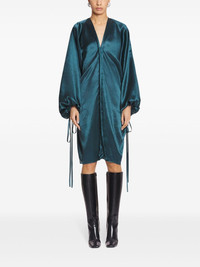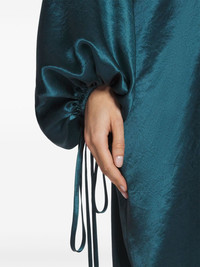 satin-finish midi dress Highlights - Prussian blue - Satin finish - V-neck - Long puff sleeves - Tied cuffs - Flared hem - Mid-length Imported Composition Acetate 100%