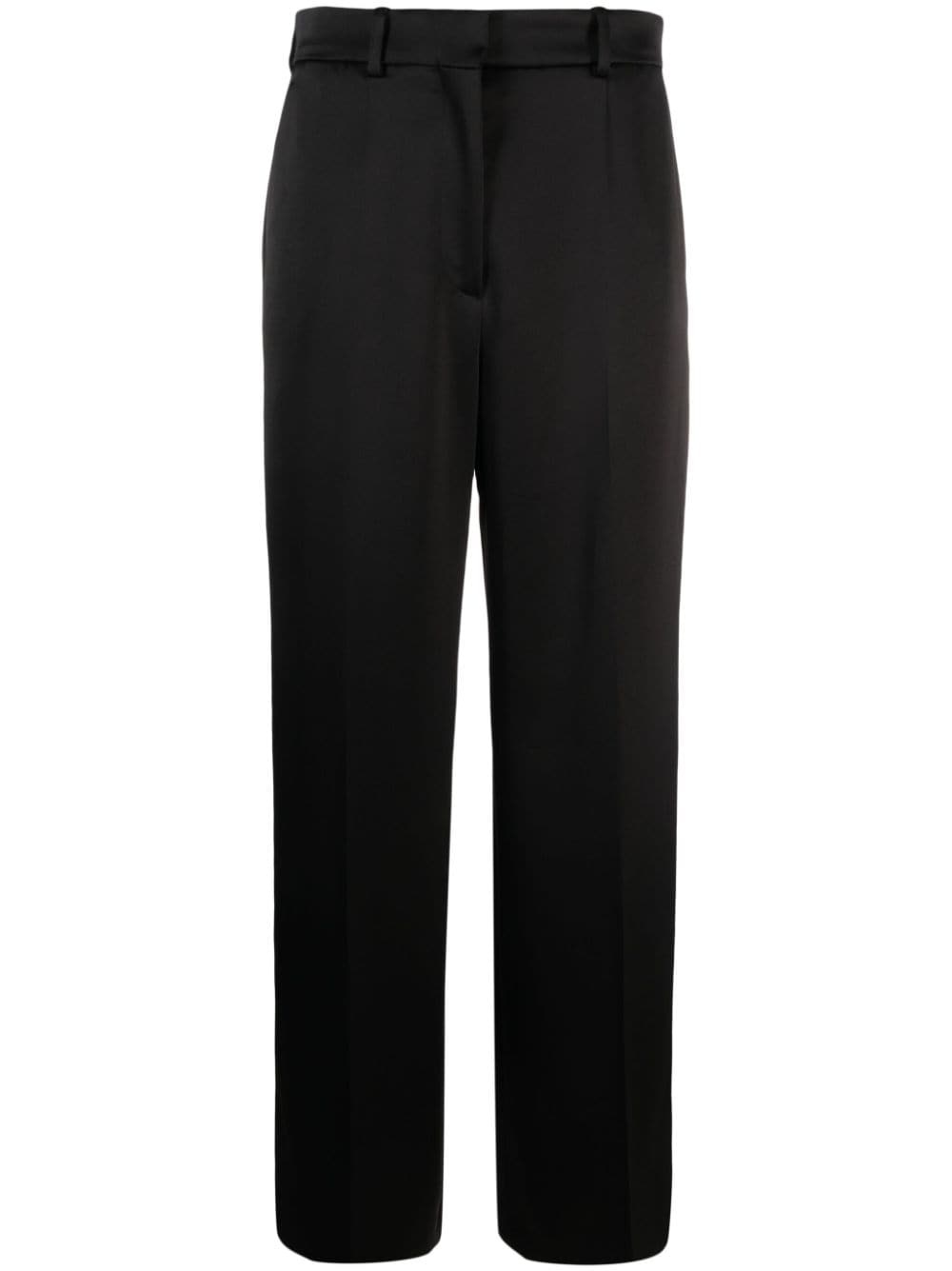satin-finish straight-leg trousers Cut in Italy to a straight-leg, these black trousers from Lanvin sit high at the waist for an elongating silhouette. The pair's lustrous satin finish speaks to the brand's penchant for understated yet refined styles. Highlights - Black - Satin finish - High-waisted - Concealed front fastening - Belt loops - Two side slit pockets - Two rear welt pockets - Straight hem Made in Italy Composition Outer: Triacetate 63%, Polyester 37% Lining: Cotton 100% SIZE & FIT Model measurements Height 5 ft 10 in(1.78 m) Bust/Chest 30.7 in(78 cm) Hips 36.22 in(92 cm) Waist 25.59 in(65 cm) FittingInformation Designed with a wide-leg cut, these trousers allow for a close fit at the waist and offer a loose and roomy fit over the leg Made from a midweight non-stretch fabric This piece fits true to size – take your usual size Washing instructions Dry Clean Only