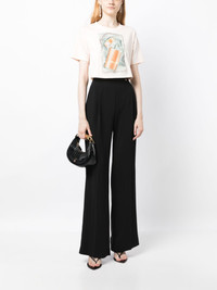 Scratch & Sniff cropped T-shirt Lanvin collaborated with Yorkshire-based artist, Anna Roberts, to create this exclusive piece. The ink used to print the artwork on the T-shirt is scented to provide a multi-sensorial experience using a technique named “scratch & sniff”. The multi-sensory aspect of the design can support up to 15 machine washes but the classic Lanvin aesthetic remains. Highlights - Light pink/multicolour - Cotton/linen - Graphic print to the front - Round neck - Short sleeves - Straight hem - Cropped Made in Italy Composition Linen/Flax 100% SIZE & FIT Model measurements Height 5 ft 10 in(1.78 m) Bust/Chest 29.13 in(74 cm) Hips 35.43 in(90 cm) Waist 23.62 in(60 cm) FittingInformation Designed to be unstructured, offering a loose fit throughout Cropped in length Made from a midweight non-stretch fabric This piece fits true to size – take your usual size