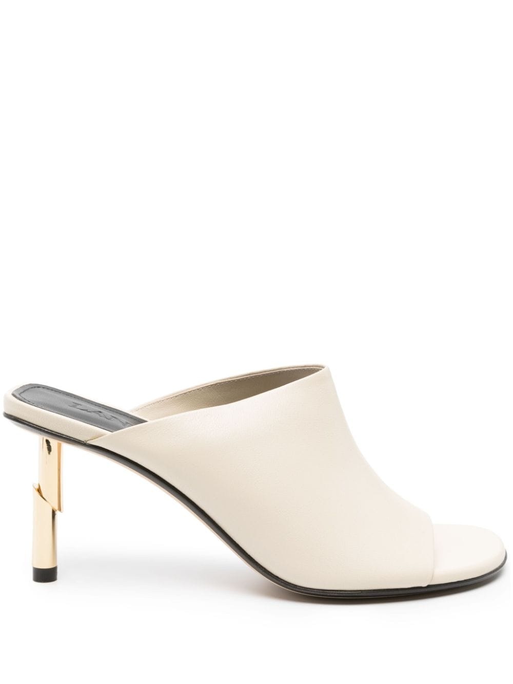 75mm Sequence sandals Lanvin’s Sequence collection is a sartorial ode to the eponymous founder’s musician daughter. Part of the line, these neutral leather mules feature gold-tone cylindrical heels designed to resemble notes on a score sheet. Highlights - Light beige - Calf leather - Stiletto heel - Slip-on style - Branded footbed - Round open toe Made in Italy Composition Outer: Calf Leather 100% Lining: Calf Leather 100% Sole: Calf Leather 100% SIZE & FIT Measurement HEEL 3.74 in(9.5 cm)