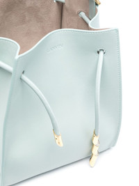 Sequence leather tote bag Lanvin’s Sequence bag is a sartorial ode to the eponymous founder’s musician daughter – the embellished knotted drawstring tie is designed to resemble notes on a score sheet. This blue version is crafted to a square silhouette that morphs into a triangular shape when cinched shut and comes with a detachable pouch. Highlights - Light blue - Calf leather - Gold-tone hardware - Drawstring fastening - Knot detailing - Single detachable top handle - Main compartment - Removable pouch Made in Italy Composition Outer: Calf Leather 100% SIZE & FIT Model measurements Height 5 ft 10 in(1.77 m) Bust/Chest 34.64 in(88 cm) Hips 35.43 in(90 cm) Waist 24.8 in(63 cm) Measurement DEPTH 6.69 in(17 cm) HANDLE 3.54 in(9 cm) HEIGHT 8.26 in(21 cm) STRAP 19.68 in(50 cm) WIDTH 6.69 in(17 cm)