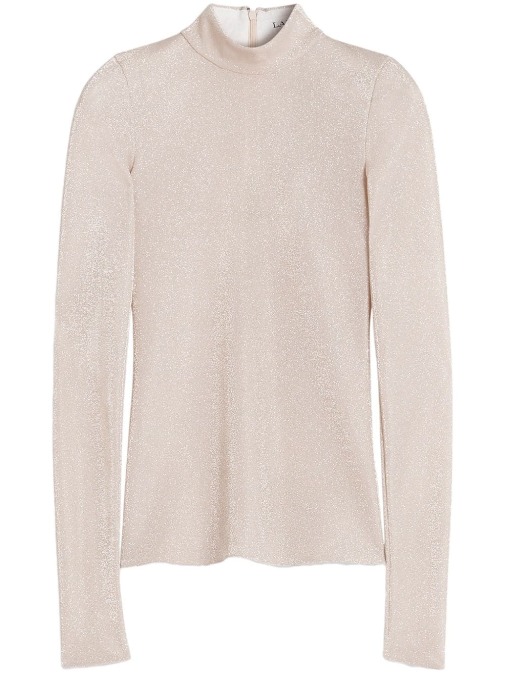 shiny top Highlights - Beige - High-shine finish - Rear zip fastening - Mock neck - Long sleeves - Straight hem Imported Composition Fabric 100% Washing instructions Read Manufacturer Guidelines