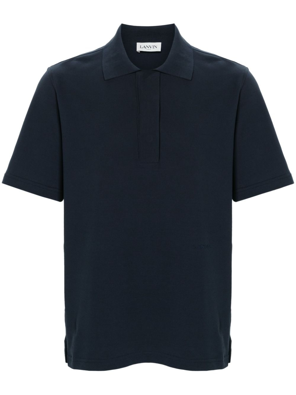 short-sleeve cotton polo shirt Highlights - Navy blue - Cotton - Pique weave - Polo collar - Front button placket - Short sleeves - Short side slits - Straight hem Made in Italy Composition Cotton 100% SIZE & FIT Model measurements Height 6 ft 2 in(1.88 m) Bust/Chest 36.61 in(93 cm) Hips 35.82 in(91 cm) Waist 27.95 in(71 cm) Measurement CHEST 40.98 in(104.1 cm) SLEEVE LENGTH 10 in(25.4 cm) FittingInformation Designed for a regular fit, this polo shirt offers a comfortable loose fit throughout the body Made from a midweight non-stretch fabric, this piece offers minimal elasticity when worn This piece fits true to size – take your usual size Washing instructions Machine Wash