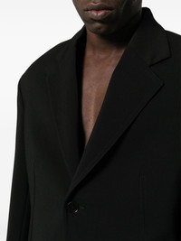 shoulder-pads single-breasted blazer Highlights - Black - Virgin wool blend - Contrast stitching - Notched lapels - Front button fastening - Shoulder pads - Long sleeves - Buttoned cuffs - Two front patch pockets - Straight hem Made in Italy Composition Outer: Virgin Wool 93%, Elastomultiester 4%, Polyamide 3% Lining: Viscose 100%, Cupro 100% SIZE & FIT Model measurements Height 6 ft 0 in(1.84 m) Bust/Chest 35.82 in(91 cm) Hips 37 in(94 cm) Waist 28.34 in(72 cm) FittingInformation Designed for a boxy fit, intended for a loose fit throughout The internal shoulder pads offer a structured shape Made from a midweight non-stretch fabric This piece fits true to size – take your usual size Washing instructions Dry Clean Only
