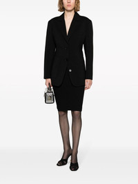 single-breasted blazer Designed and crafted in Italy, this Lanvin blazer is skillfully fashioned from stretch virgin wool in a classic black colourway. The tailored waist enhances the hourglass silhouette, creating flattering curves, while discreet pockets offer a practical touch. Highlights - Black - Virgin wool blend - Notched lapels - Shoulder pads - Long sleeves - Buttoned cuffs - Front button fastening - Chest welt pocket - Two front patch pockets - Straight hem - Full lining Made in Italy Composition Outer: Virgin Wool 93%, Spandex/Elastane 4%, Polyamide 3% Lining: Viscose 100% SIZE & FIT Model measurements Height 5 ft 10 in(1.79 m) Bust/Chest 32.67 in(83 cm) Hips 34.25 in(87 cm) Waist 24.4 in(62 cm) FittingInformation Designed for a slim fit that sits just away from the body offering a close yet comfortable fit The internal shoulder pads offer a structured shape Made from a midweight fabric This piece fits true to size – take your usual size