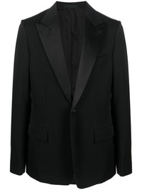 single-breasted wool tuxedo jacket Highlights - Jet black - Wool - Wide peak lapels - Front button fastening - Chest welt pocket - Two front flap pockets - Long sleeves - Buttoned cuffs - American rear vent Made in Italy Composition Outer: Wool 100%, Buffalo Horn 100% Lining: Cupro 100%, Viscose 100% SIZE & FIT Model measurements Height 6 ft 2 in(1.88 m) Bust/Chest 37.79 in(96 cm) Hips 35.82 in(91 cm) Waist 29.92 in(76 cm) FittingInformation Designed for a slim fit, offering a comfortable fit that sits just away from the body The vented hem offers movement at the rear Made from a midweight non-stretch fabric This piece fits true to size – take your usual size Measurement CHEST 42.91 in(109 cm) SLEEVE LENGTH 27.95 in(71 cm) LENGTH 31.88 in(81 cm) WAIST 42.51 in(108 cm) Washing instructions Dry Clean Only