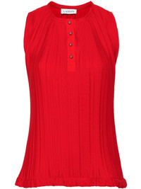 pleated crepe de chine blouse Lanvin says this red top ‘presents a new interpretation of one of the House's signature fabrics, the charmeuse.’ It’s cut from crepe de chine and fully pleated to enhance the fluid silhouette and falls to a ruffled hem. Highlights - Blood red - Crepe de chine - Fully pleated - Round neck - Sleeveless - Ruffle hem - Front button placket Imported Composition Polyester 100% SIZE & FIT Model measurements Height 5 ft 10 in(1.77 m) Bust/Chest 31.88 in(81 cm) Hips 36.22 in(92 cm) Waist 24.01 in(61 cm) FittingInformation Designed for a relaxed fit, this piece allows for comfort and movement when worn The pleated construction on this piece allows for additional movement and flexibility in the fit This piece fits true to size – take your usual size Washing instructions Dry Clean Only