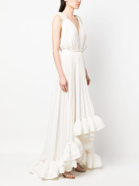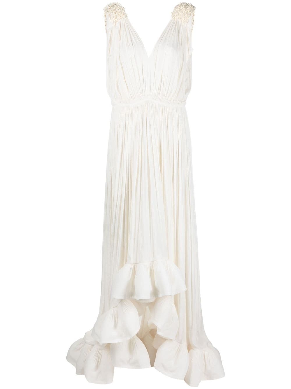 sleeveless ruffle-hem dress Effortlessly opulent, this sleeveless dress from Lanvin reflects the French roots of the brand. Gathered detailing and a flowing ruffle hem in a monochromatic hue add to this effect. Imported Composition Polyester 100%, glass 100% SIZE & FIT Model measurements Height 5 ft 10 in(1.78 m) Bust/Chest 31.49 in(80 cm) Hips 36.22 in(92 cm) Waist 25.59 in(65 cm) Washing instructions Dry Clean Only