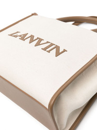 small In&Out tote bag Crafted from eggshell-white canvas and trimmed with beige smooth calf leather throughout, Lanvin's In&Out tote is decorated with a logo at the centre and designed with everyday use in mind thanks to its spacious main compartment and adjustable strap that allows it to be worn in multiple ways. Highlights - Eggshell white/beige - Cotton - Canvas - Leather trim - Logo patch to the front - Side press-stud - Open top - Two rolled top handles - Adjustable detachable chevron shoulder strap - Main compartment - Debossed internal logo - Removable pouch - Silver-tone hardware - This piece comes complete with a protective dust bag. Made in Italy Composition Outer: Cotton 100%, Bos Taurus 100%, Brass 50%, zamac 50% Lining: Cotton 60%, Linen/Flax 40% SIZE & FIT Model measurements Height 5 ft 10 in(1.78 m) Bust/Chest 33.07 in(84 cm) Hips 36.61 in(93 cm) Waist 24.8 in(63 cm) Measurement DEPTH 5.11 in(13 cm) HANDLE 5.51 in(14 cm) HEIGHT 9.05 in(23 cm) STRAP 47.63 in(121 cm) WIDTH 14.56 in(37 cm)