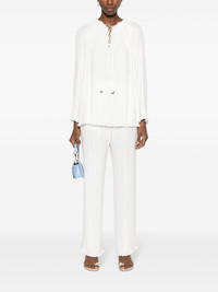 straight-leg pleated trousers Highlights - Off-white - Fully pleated - Mid-rise - Fitted waistline - Concealed side zip fastening - Two side inset pockets - Straight leg Imported Composition Polyester 100% SIZE & FIT Model measurements Height 5 ft 10 in(1.78 m) Bust/Chest 31.49 in(80 cm) Hips 37 in(94 cm) Waist 23.62 in(60 cm) FittingInformation Designed with a wide-leg cut, these trousers allow for a close fit at the waist and offer a loose and roomy fit over the leg The pleated construction on this piece allows for additional movement and flexibility in the fit This piece fits true to size – take your usual size Washing instructions Dry Clean Only