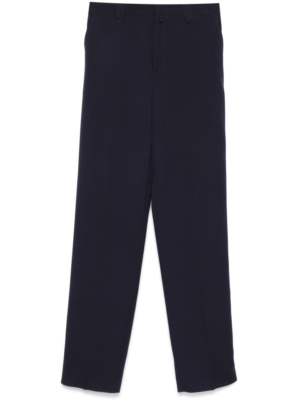 tapered trousers Highlights - Navy blue - Concealed front button, hook and zip fastening - Belt loops - Two side slash pockets - Two rear welt pockets Made in Italy Composition Outer: Wool 100% Lining: Bemberg 100%, Buffalo Horn 100%, Cotton 100%