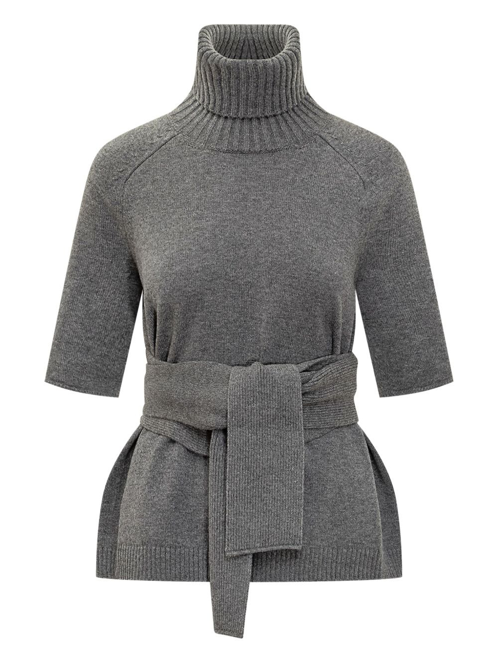 turtleneck belted top Highlights - Grey - Turtleneck neck - Short sleeves - Self-tie belt - Open back detail - Wool knit Made in Italy Composition Wool 100%